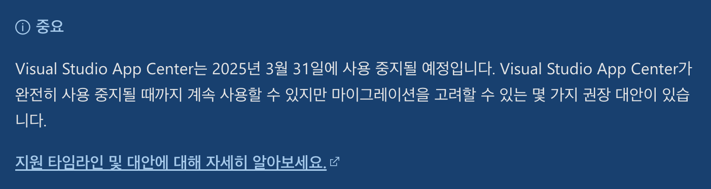 MS의 Visual Studio App Center가 2025년 3월 31일 부로 지원이 종료된다.